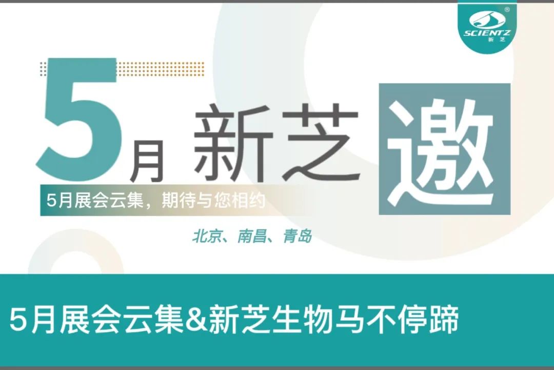 Hey,各位小伙伴們!四月的展會即將步入尾聲,而五月的新芝又要馬不停蹄參加多個展會啦!在展會上,新芝生物將展示一系列最新的生命科學醫療儀器,包括生物醫藥、醫療衛生、IVD、生物安全、食品安全、疾病預防與控制、檢驗檢疫、環境保護及新材料研究等諸多領域的儀器,滿足您的各項研究和實驗需求。展位上有專業的應用工程師,與您共同探討問題的解決方案,期待著在展會上與大家進行深入的交流和合作,為客戶提供更好的產品和服務。如果你還在為選購儀器而發愁,那就千萬不要錯過這個機會!