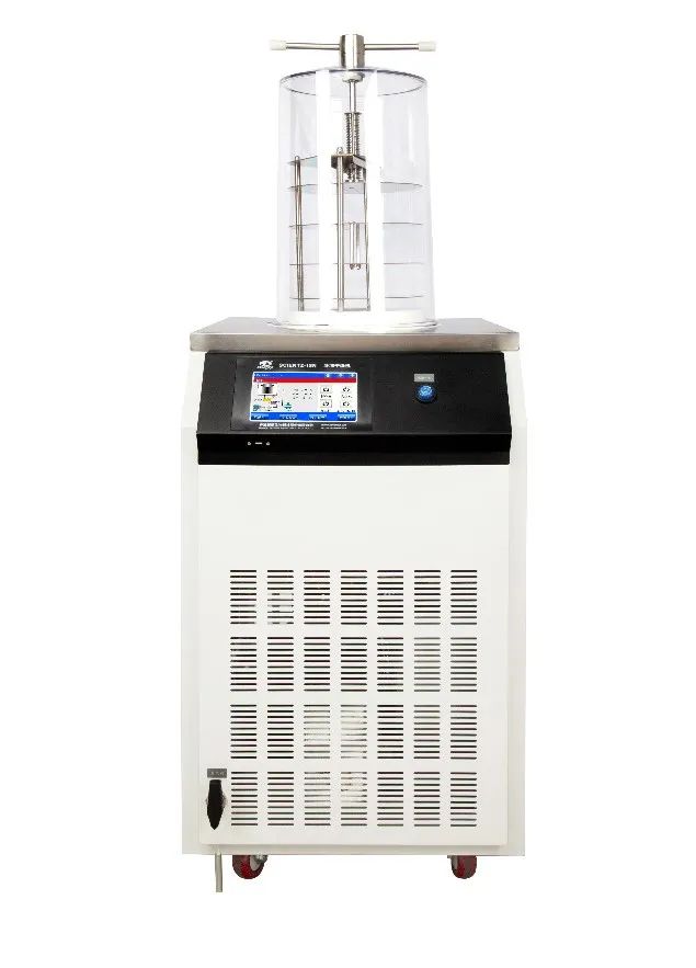 冷凍干燥的原理是:真空條件下,預(yù)凍為固態(tài)的目標(biāo)物溶劑通過升華的方式被除去,從而達(dá)到對目標(biāo)物干燥的效果。冷凍干燥主要應(yīng)用于干燥熱敏感、受熱易變性的物質(zhì),如血清、疫苗、微生物、組織等生物樣品,可保持樣品原來的形狀和結(jié)構(gòu),便于儲存;還可以用于凍干醫(yī)藥產(chǎn)品或者其他凍干制品在大批量生產(chǎn)之前的工藝摸索。常見的凍干機(jī)有鐘罩和原位兩種型號,可搭配壓蓋、多歧管等功能,根據(jù)客戶的用量需求和功能需求進(jìn)行選擇。