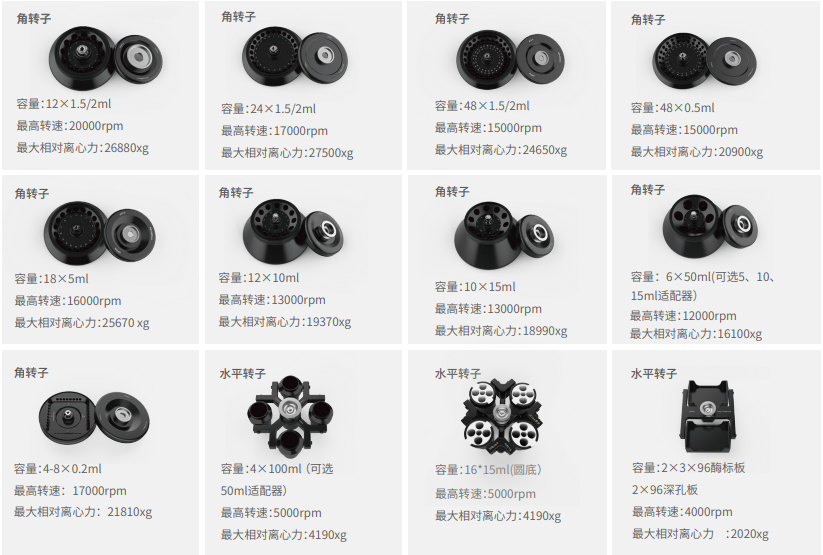 ![]() | 具備12種可選轉子規格,9種氣密性角轉子,3種水平轉子; |